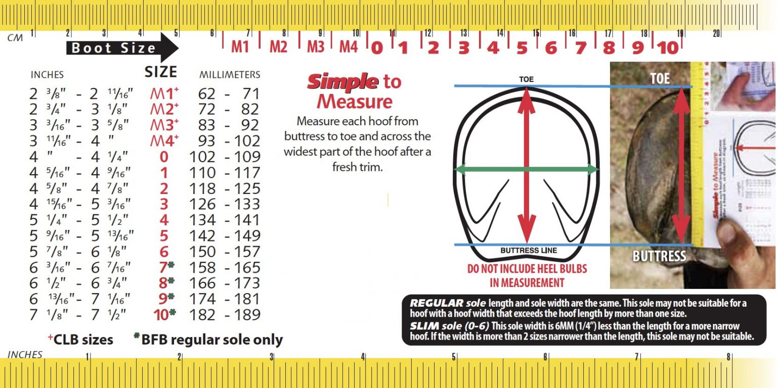 If the boot is difficult to put on, it may be too small. A proper fit should allow the boot to “pop” neatly onto the hoof. Always double-check your measurements against the chart above.
