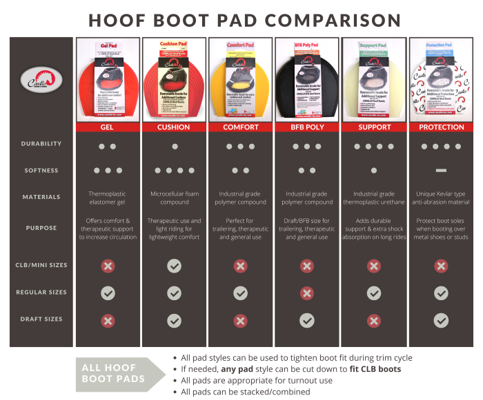 We always recommend keeping a set of Hoof Boot Pads available. They are an excellent tool for customizing boot fit and increasing comfort whenever your horse needs extra support. Still not sure which Cavallo Hoof Boot your horse needs? Read our ultimate Hoof Boot Pad Comparison HERE.