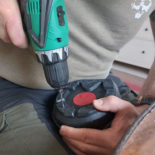 - When drilling, make sure the stud does not extend past the sole of the boot. This can especially be a problem with older boots that have worn soles.